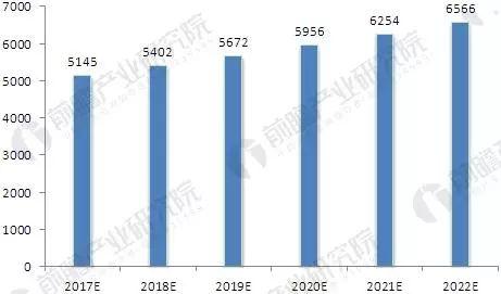 2017-2022年全球鋁材消耗量預(yù)測(單位:萬噸)